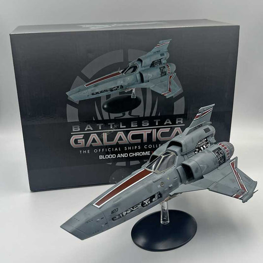 Concept artist Richard Livingston originally designed the Valkyrie for the episode Home, where it appears briefly in a flashback sequence. His design went through several changes when the model was built by Pierre Drolet, who made it look more like a familiar Battlestar. The Eaglemoss model is just over 10.5 inches (27 cm) long.