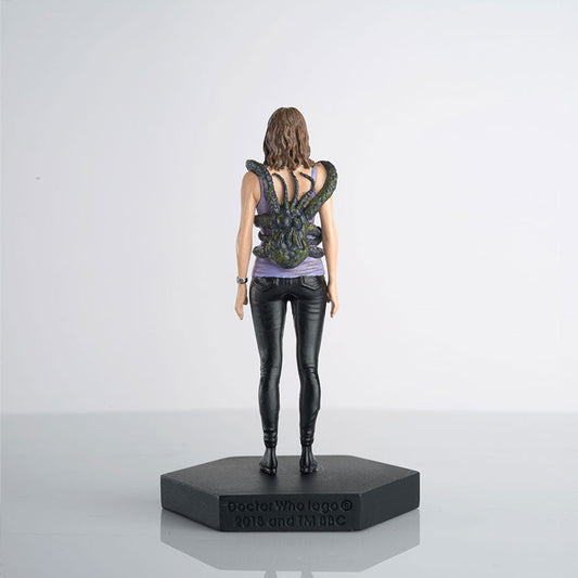 The Lin-Dalek figurine captures the likeness of actress Charlotte Ritchie with squid-like Dalek on her back. His tentacles are wrapped around her body giving full control of her body and mind to the Dalek. She is standing in an unnaturally stiff pose giving her a puppet look.