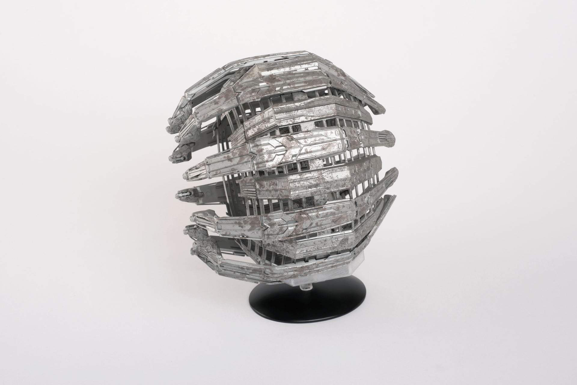 The Sphere, or Cruiser, was the Kaylon's main attack shipl  Each Cruiser was equipped with one Interceptor, which served as an auxiliary craft.  All spheres were equipped with highly advanced technology, a single central cannon with impressive firepower and a hull that resisted target-locking.  Cruisers are capable of sustained quantum travel at 35 lightyears per hour. The model is just under 7 inches (17.5 cm) across.
