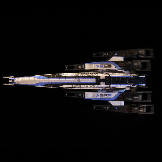 Commander Shepard's legendary vessel has been meticulously crafted in die-cast metal to capture every detail. The model was based on in-game assets to ensure that it is as accurate as possible. It measures 8.66 inches (22 cm) in length, and comes with a stand making it ideal for any collector's shelf or desk.
