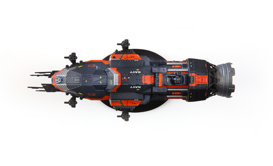 Most of the design work on the ship was done by CG modeller Jose Perez who set out to make a state of the art ship that was a contrast to the older Galactica. The model is just under 10.5" (26.5 cm) long.