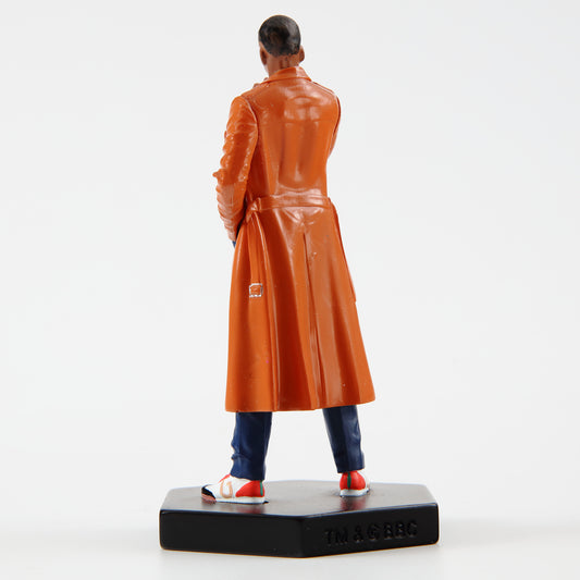 highly detailed metallic resin figurine has been crafted and painted by hand, and shows the Twelfth Doctor from the episode 'Flatline' as he steps out of his TARDIS in his dark blue Crombie suit with red check lining and Paul Smith trousers, brogues and he wears a signet ring on his ring finger.