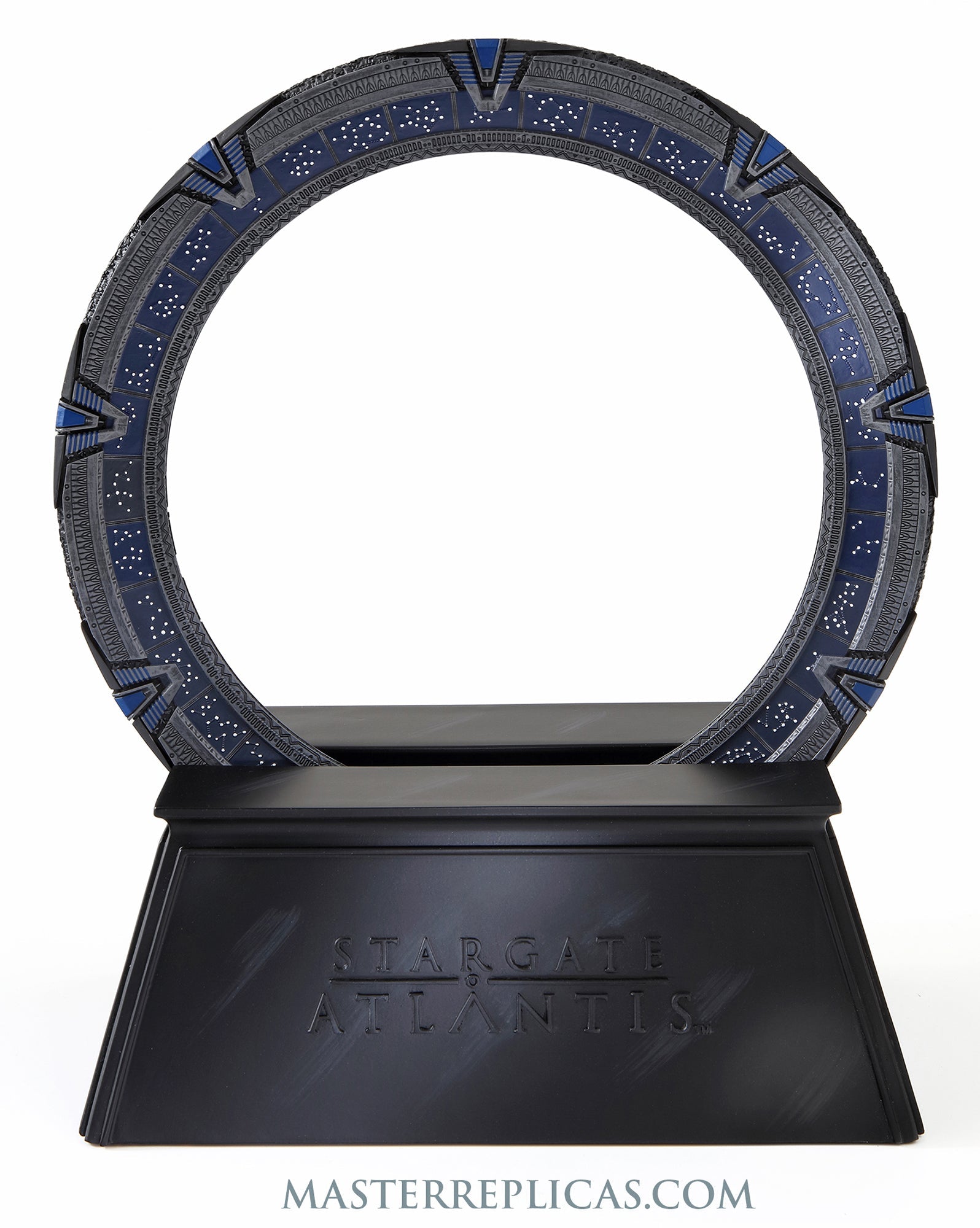 The replica gate is made of polystone and comes with a separate display base that carries the Stargate Atlantis logo. Master Replicas has carefully reproduced every glyph on the gate, which was based on a digital model that was supplied by MGM.