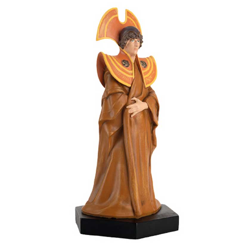 This figurine captures Tom Baker's Fourth Doctor, clad in the ceremonial Gallifreyan robes he donned in 'The Deadly Assassin'. The story saw the Fourth Doctor pitted against the Master who returned after three years in a new, decrepit wraith-like form played by Peter Pratt! The President of Gallifrey is resigning, and ready to name his successor but the Doctor is an unwanted guest at the ceremony.