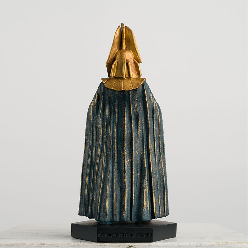This figure depicts the imposing Omega, standing tall over Jon Pertwee’s Third Doctor. He wears a metallic green cloak and gold mask that are meant to protect him from the ravages of radiation, but the radiation has long since worn away his physical body.
