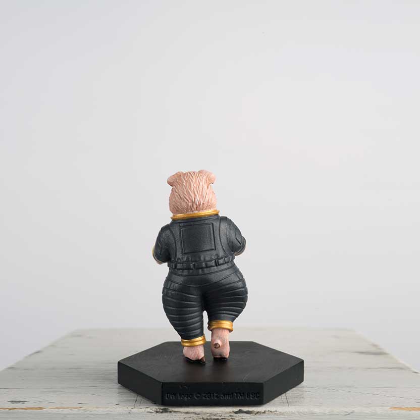 As part of the Slitheens' plan to destroy the planet Earth, they modified an Earth pig so that it looked like an alien. They then dressed it up in a spacesuit, and put it in a ship, which they crashed into the Thames. The pig had no idea about their plans and died trying to escape. When the Ninth Doctor examined the body he realised that everything was not as it seemed. The figurine is about 6.5 cm tall.