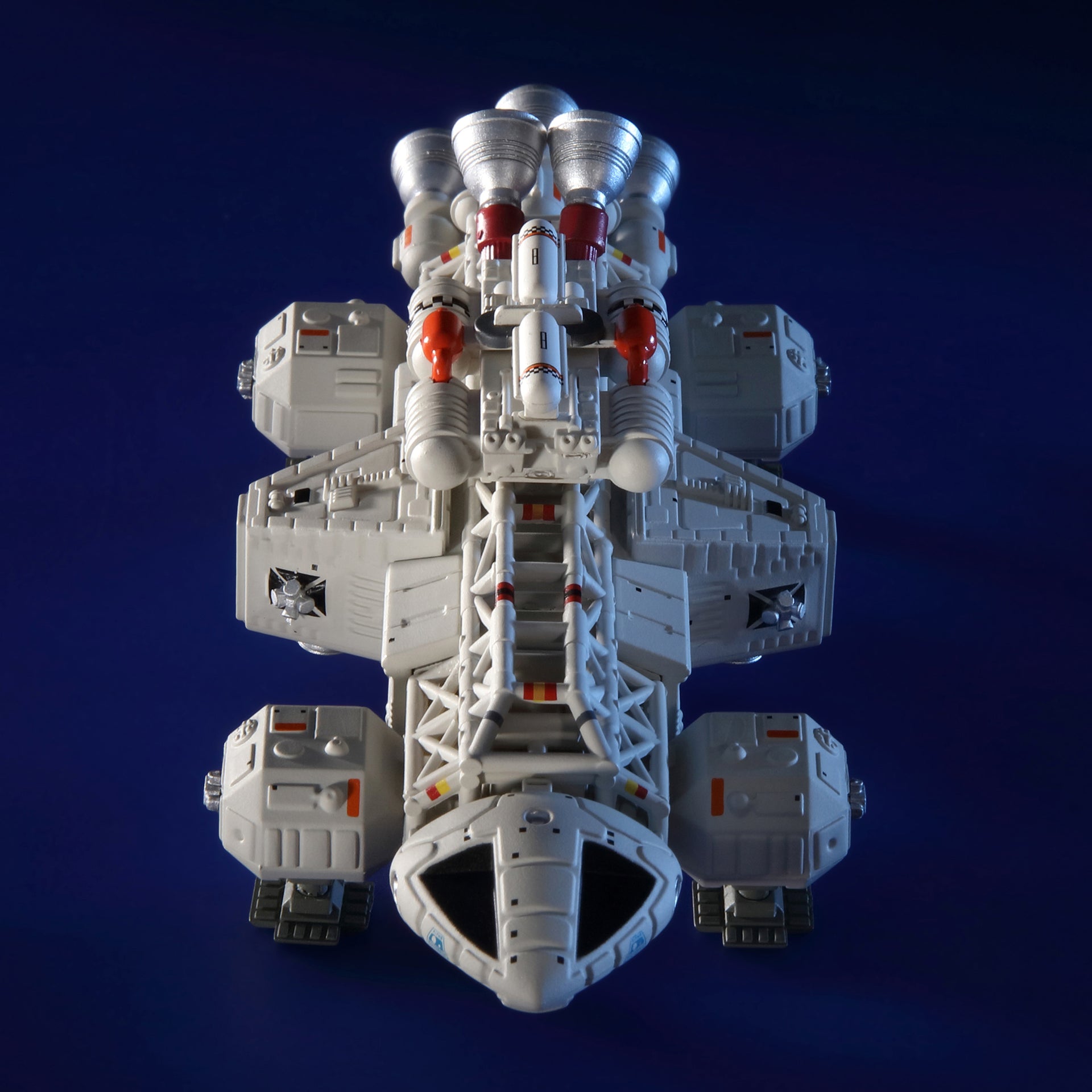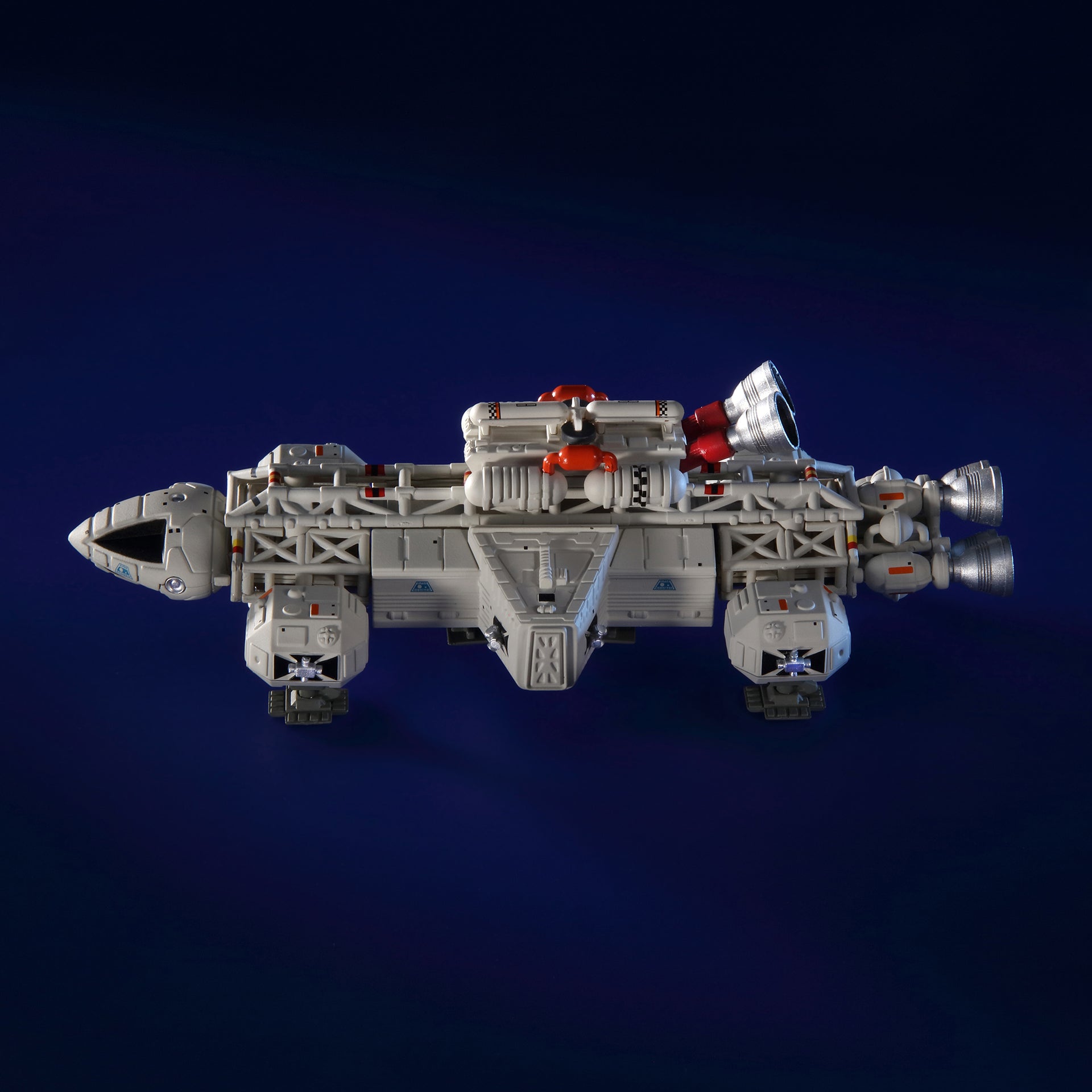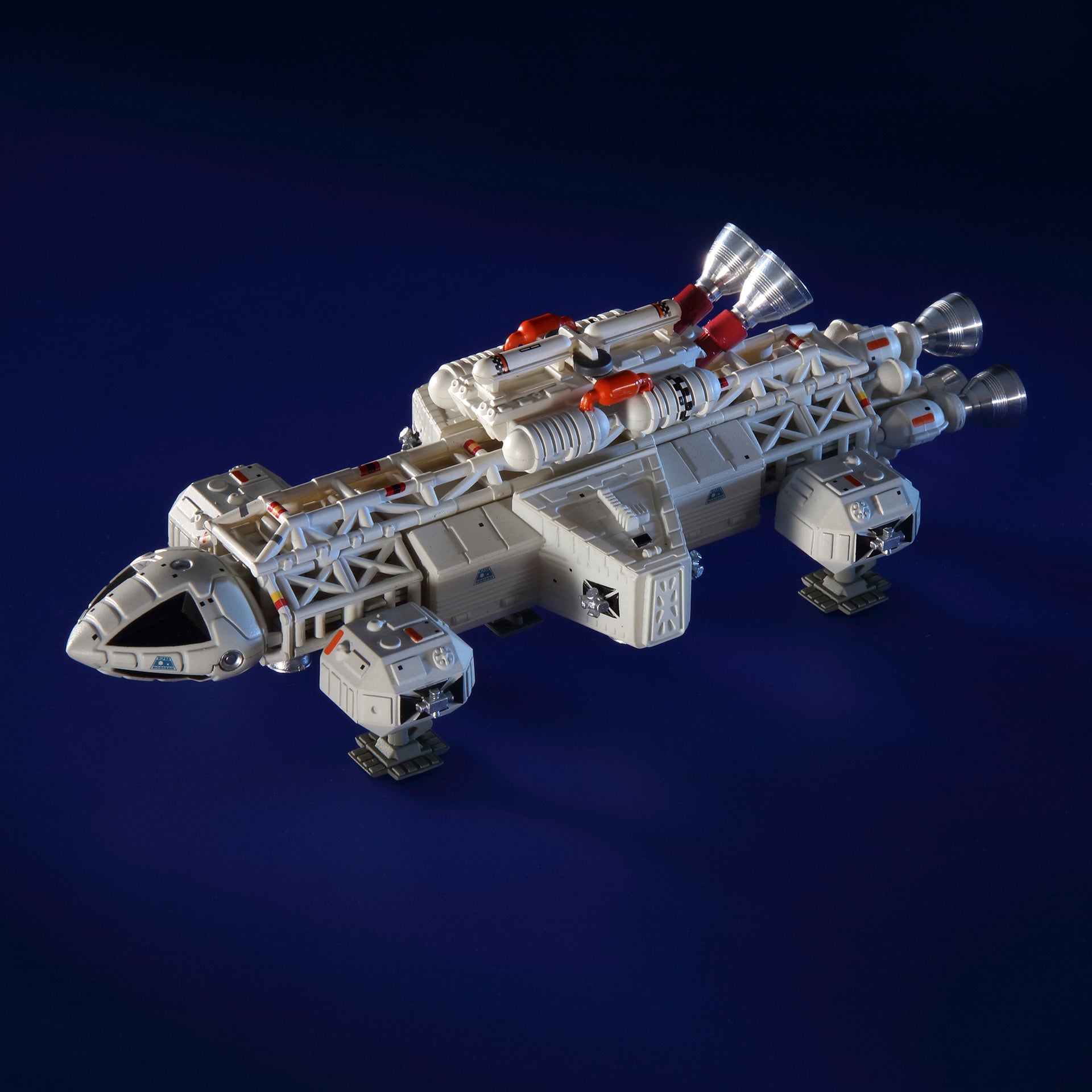 | The Laboratory Eagle appeared in the Space 1999 story “The Metamorph”, which opened the second season and introduced Maya. When two Alphan pilots were captured by Mentor, Commander Koenig took Eagle 4 to retrieve them. He ordered it to be fitted with a laboratory pod and with additional booster engines that were mounted on the top and were designed to increase its power and speed. These stunning models are based on the acclaimed Sixteen 12 tooling. This model of the laboratory Eagle Transporter is 5.5 inches (13 cm) long and has a detachable pod. It is a similar size to Master Replicas’ Starship Library series. |